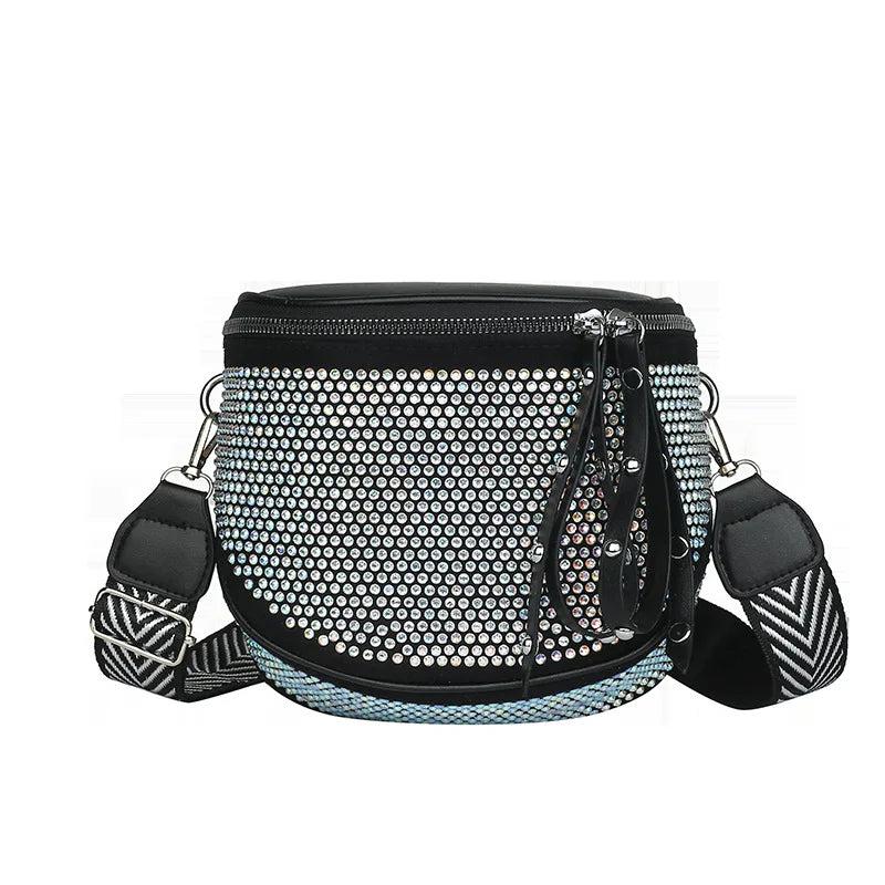 Elegant one shoulder handbag featuring wild crystal design, high-quality PU leather construction, perfect for ladies.