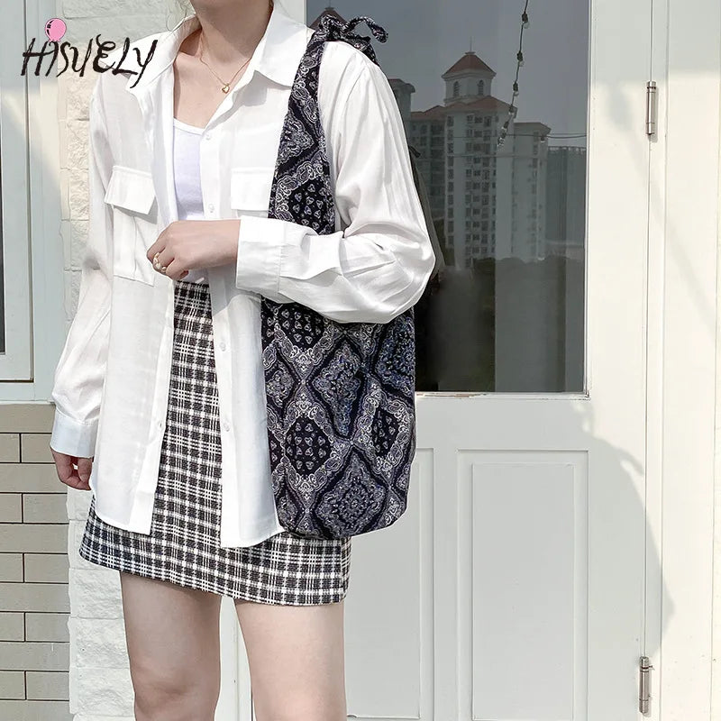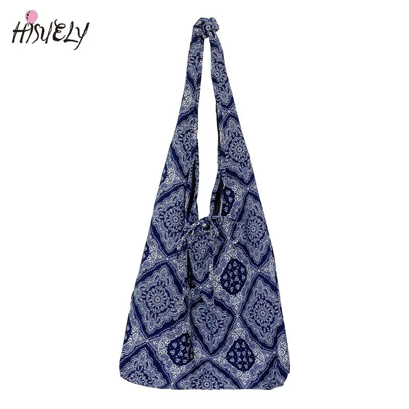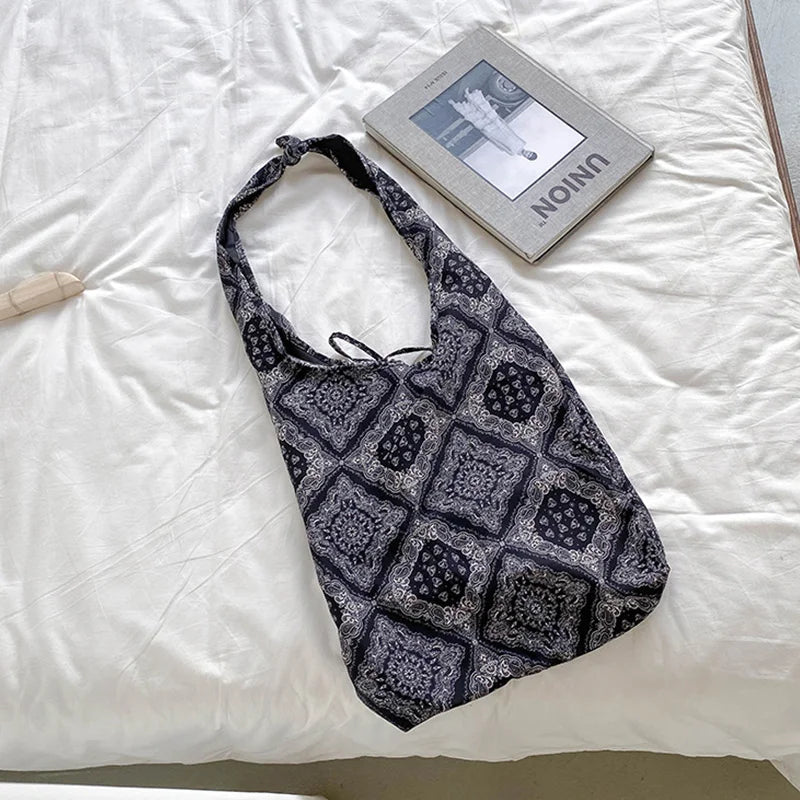 One Shoulder Messenger Handbag Tote Bag Canvas Retro Print Travel Bag