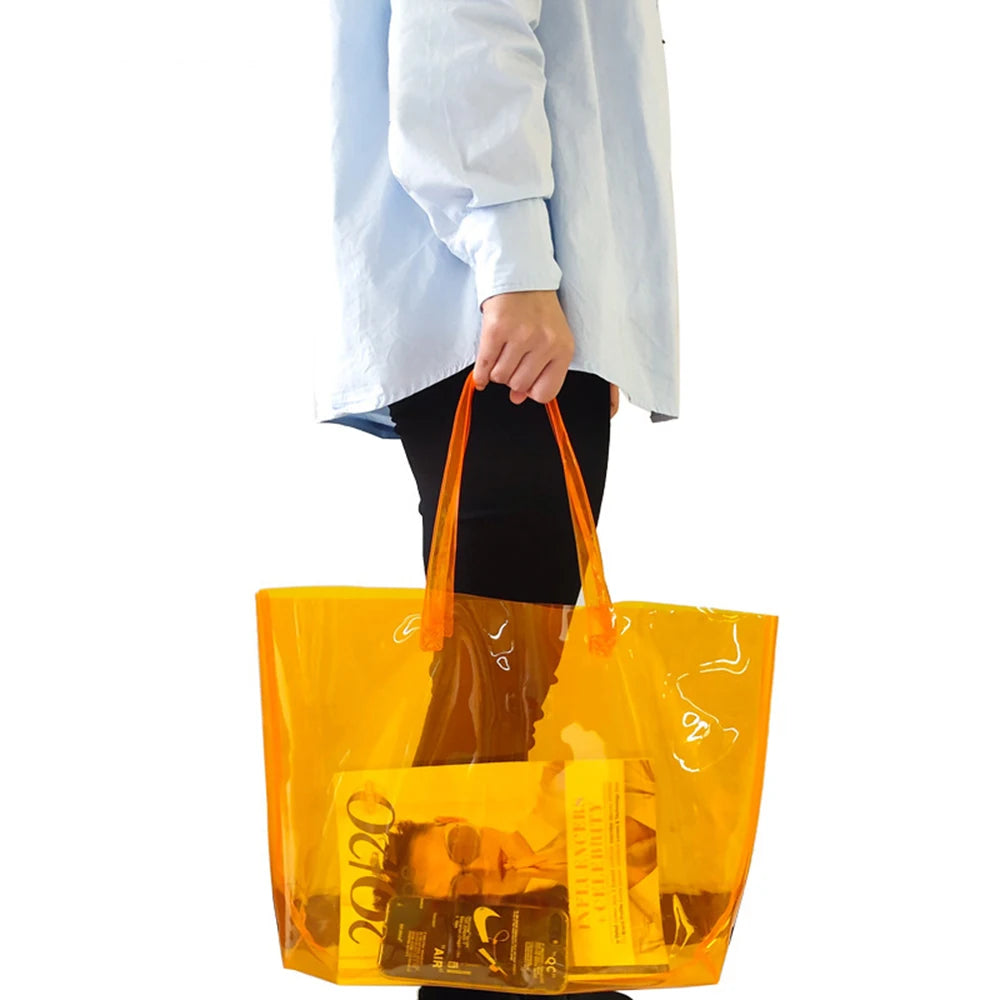 Orange PVC Shopping Bag High Handbag Waterproof Large Capacity
