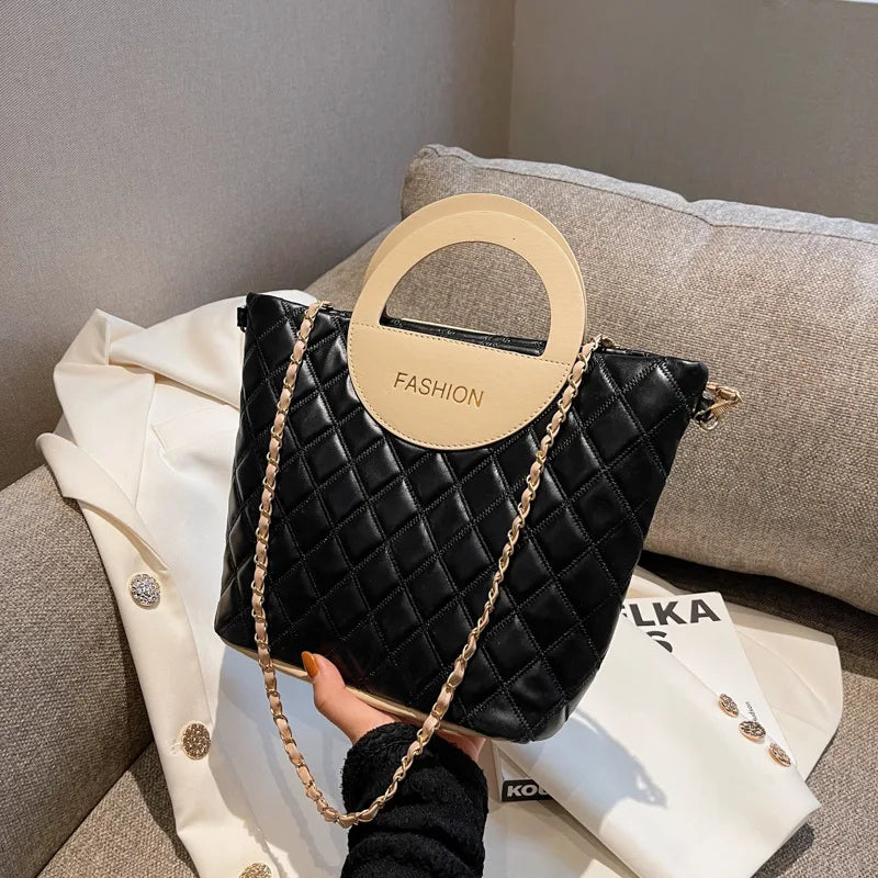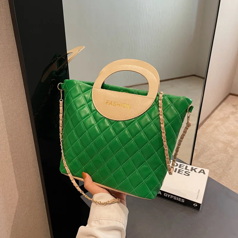 Patchwork Pu Leather Ladies Shoulder Bag Chain Strap Crossbody Bag