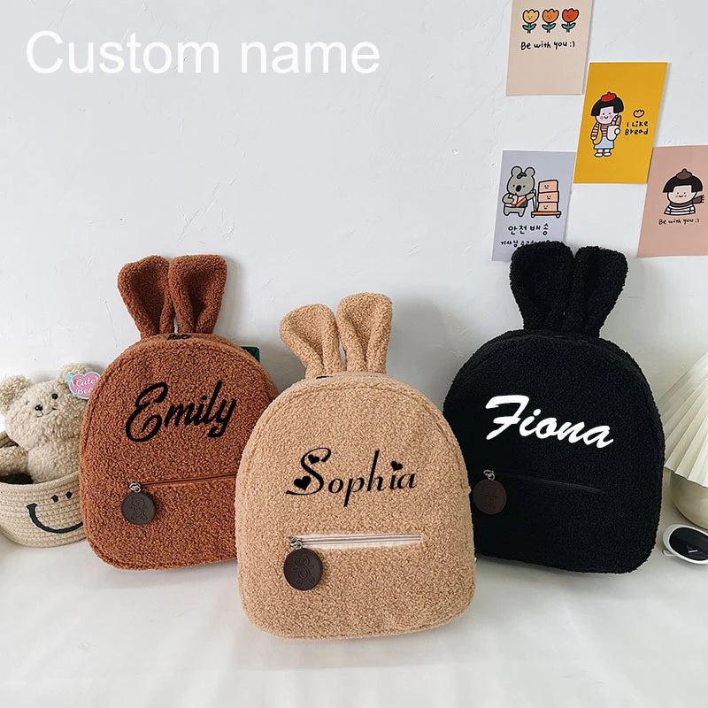 Personalised Bunny Backpack with Your Name Plush Rabbit Ear Satchel for Girls