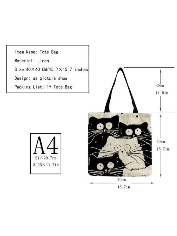 Description:This tote bag features a fun cartoon cat design with a large capacity for all your essentials. It's a perfect handbag for daily use and can be easily folded for convenient storage.Features: Fun and stylish cartoon cat design Large capacity for all your essentials Perfect handbag for daily use Foldable...