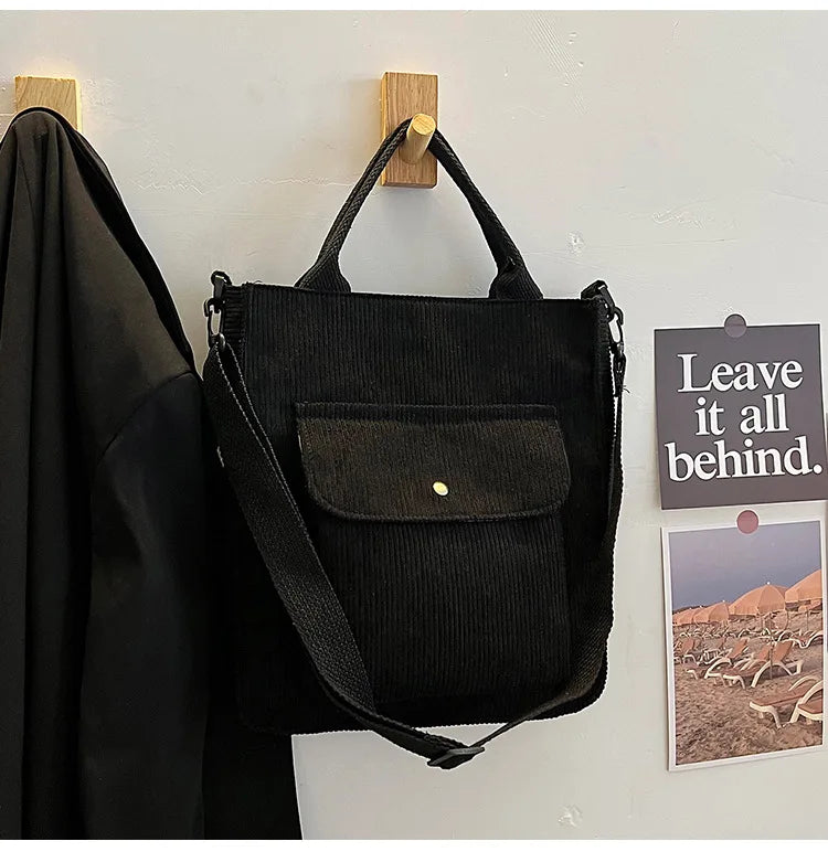 Elevate your style with this chic corduroy shoulder bag featuring a monogrammed name. This versatile handbag doubles as a messenger bag and tote bag, perfect for shopping or everyday use.