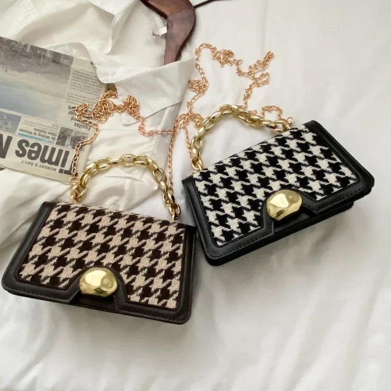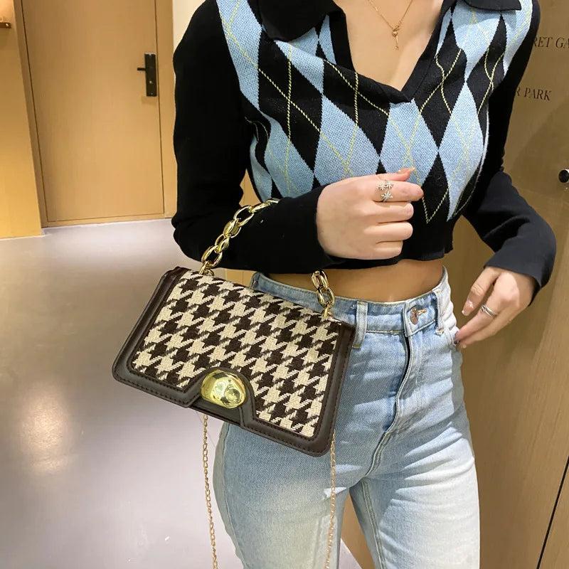 Plaid Crossbody Handbag Totes High PU Leather Chain Shoulder Messenger Bag