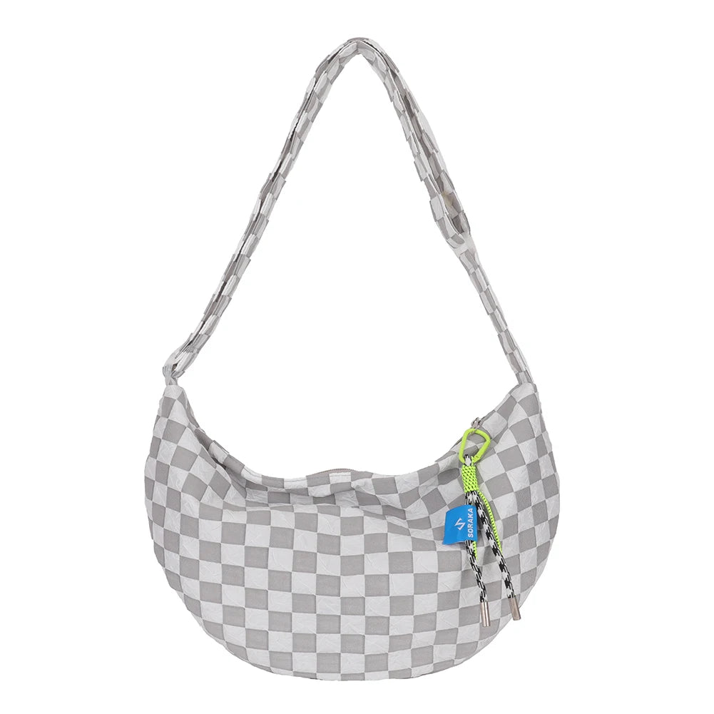 Plaid Half Moon Crescent Ladies Handbag Soft Lightweight Casual Portable Bag