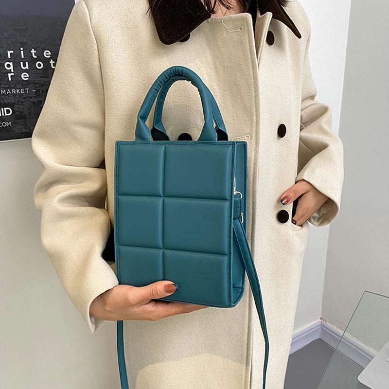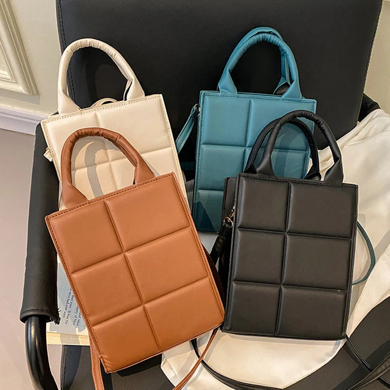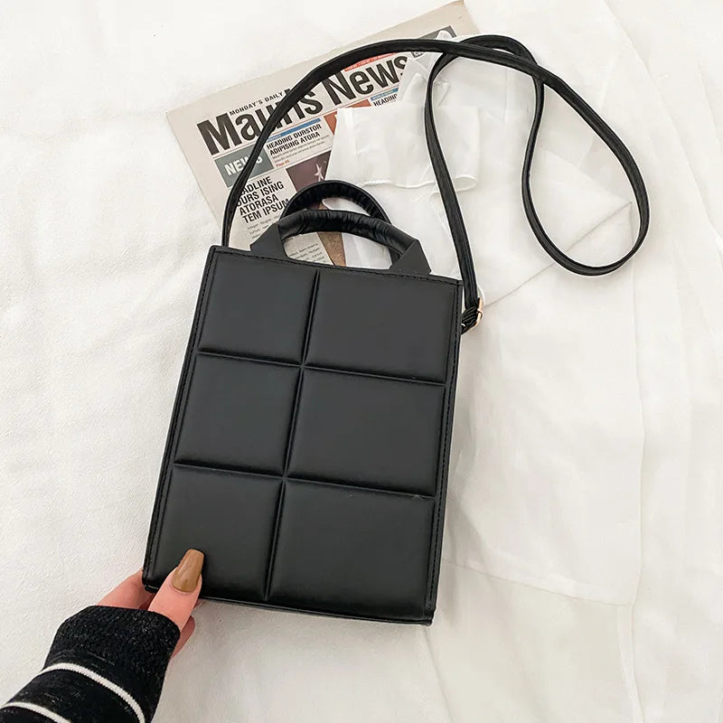 Stay stylish with this square shoulder bag made of high-quality PU leather. It features a plaid pattern and a convenient crossbody design.