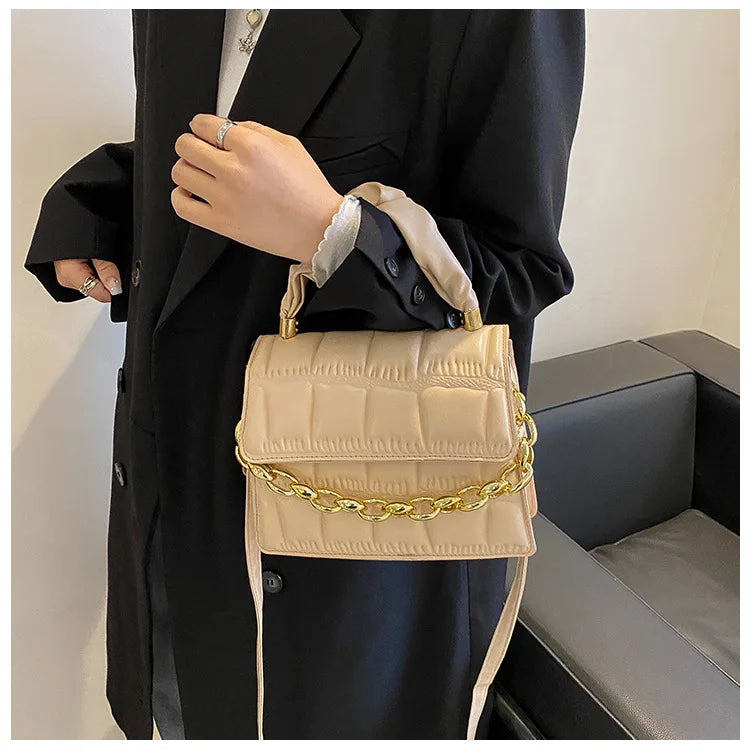 This stylish plaid square shoulder bag is made of high-quality PU leather. It features a chain crossbody strap.
