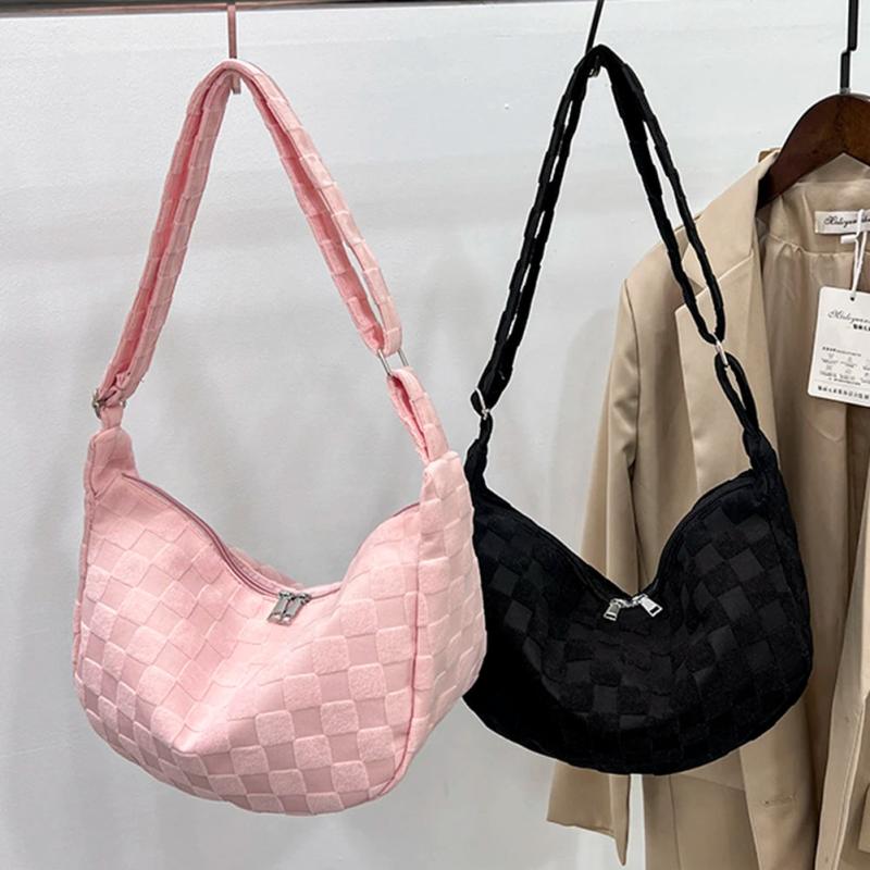 This stylish underarm bag is made of woolen cloth and features a large capacity for all your essentials. It has a plaid design, adjustable strap, and is perfect for work or daily use.