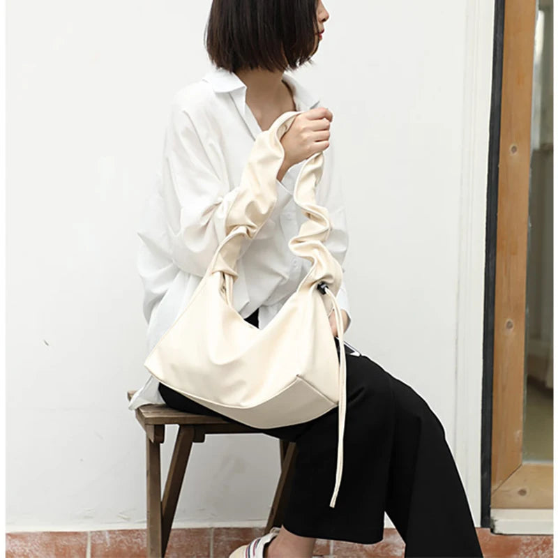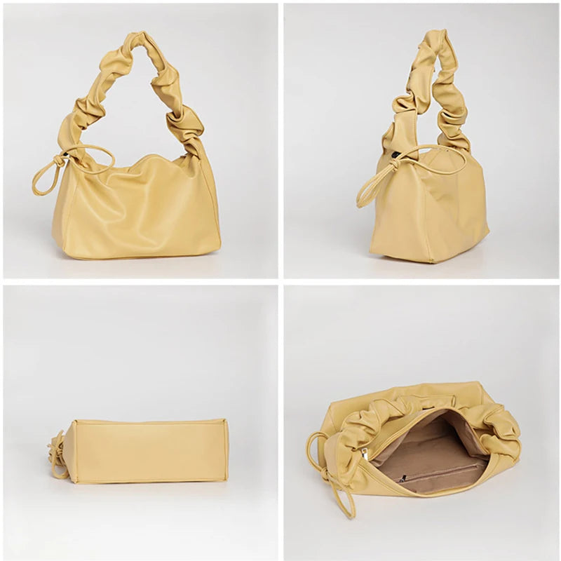 Pleated Armpit Shoulder Bag Soft PU Leather Handbag