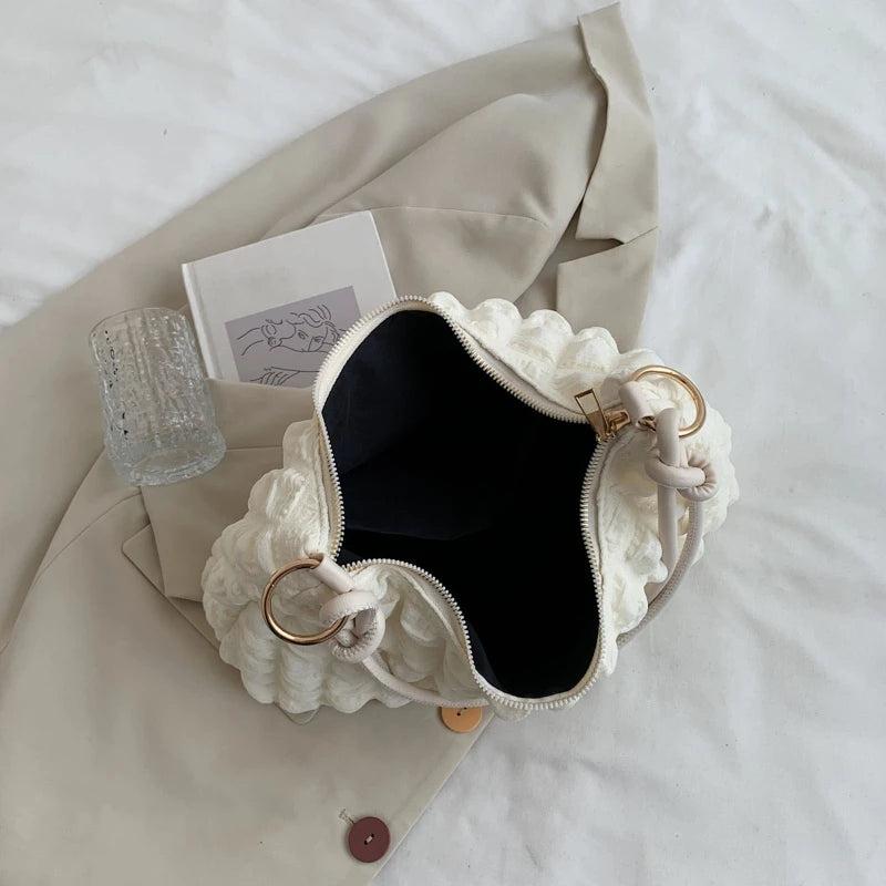 This delicate handbag is a perfect gift for Mother's Day. It features a pleated design with a large capacity, making it versatile for various occasions.