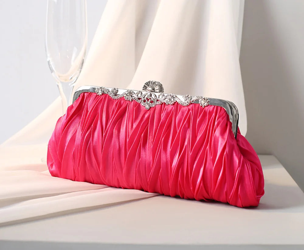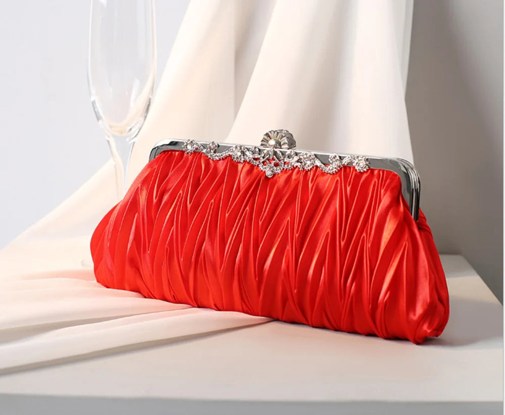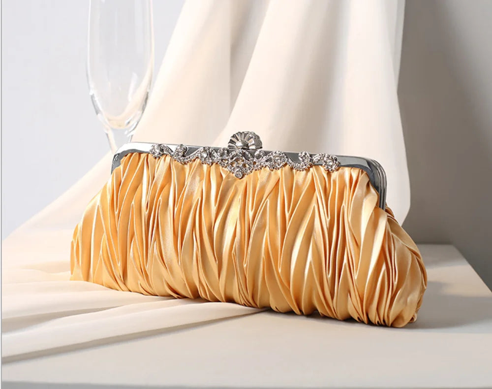Elegant pleated clutch purse perfect for dinner parties, banquets, bridal weddings, and casual occasions.