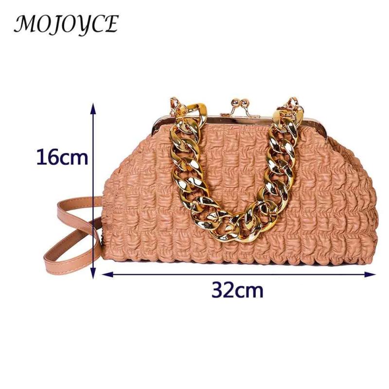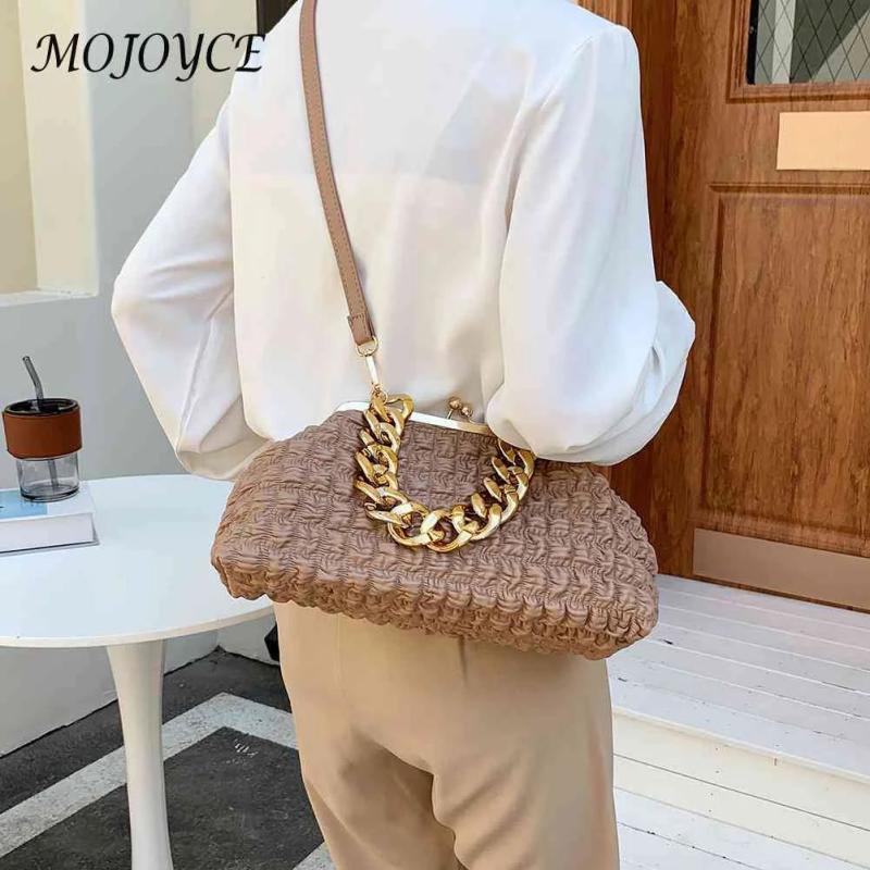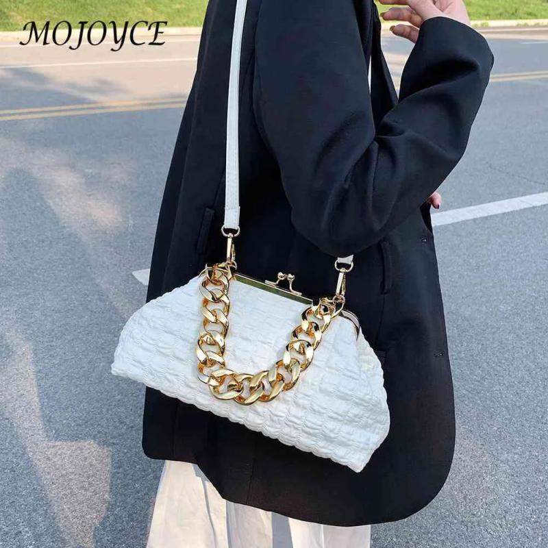 This underarm handbag is perfect for evening banquets. Made with soft material and features a stylish pleated plaid design with a thick chain. It has an adjustable hasp for convenience.