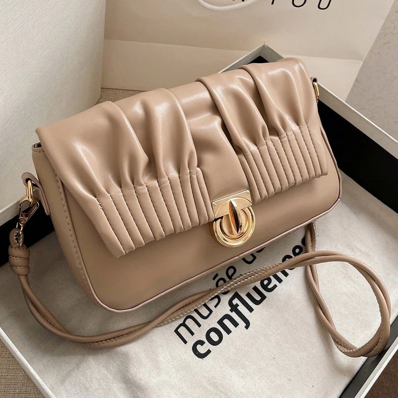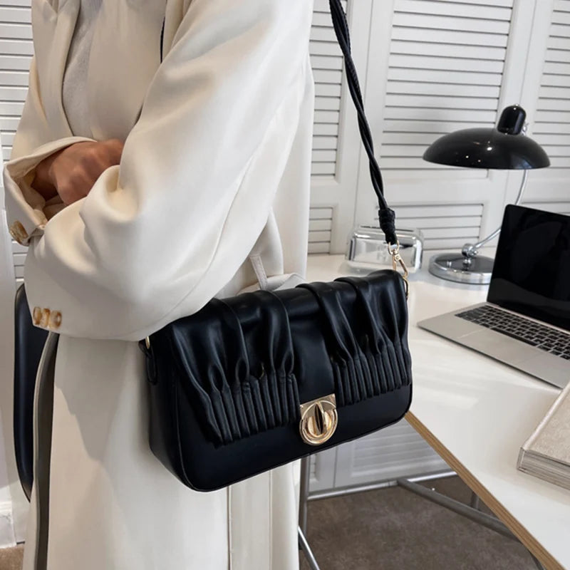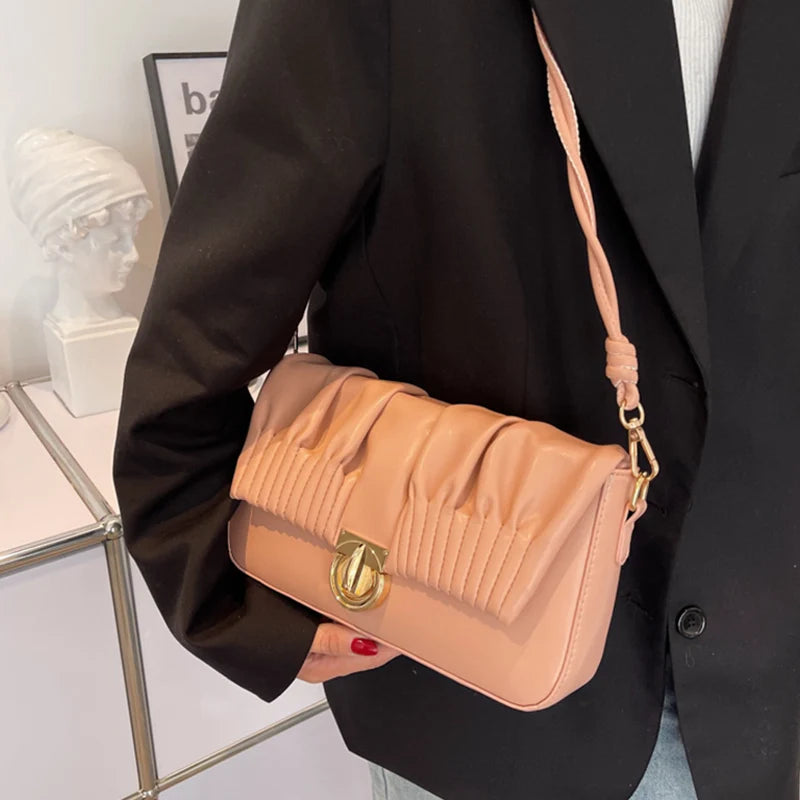 Pleated Shoulder Bags PU Leather Handbags Crossbody Purse