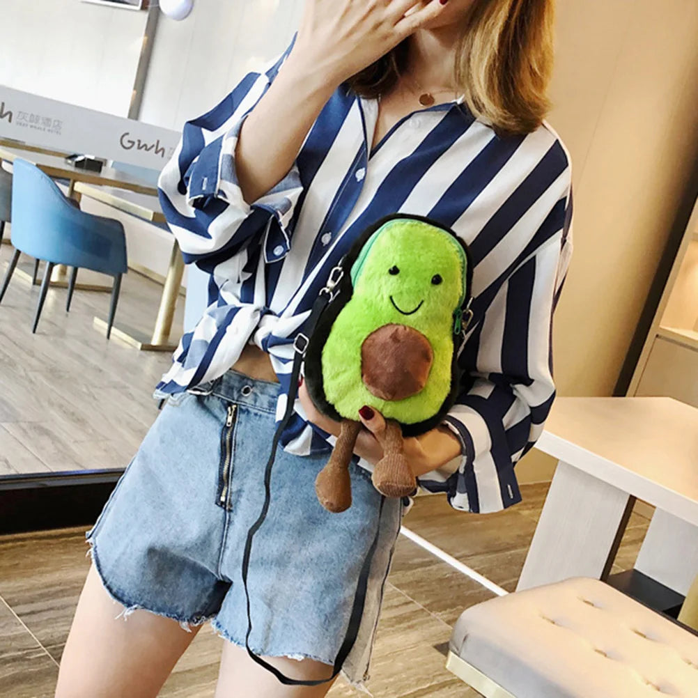 Plush Avocado Crossbody Bag for Girls - Cute Fruit Satchel Handbag