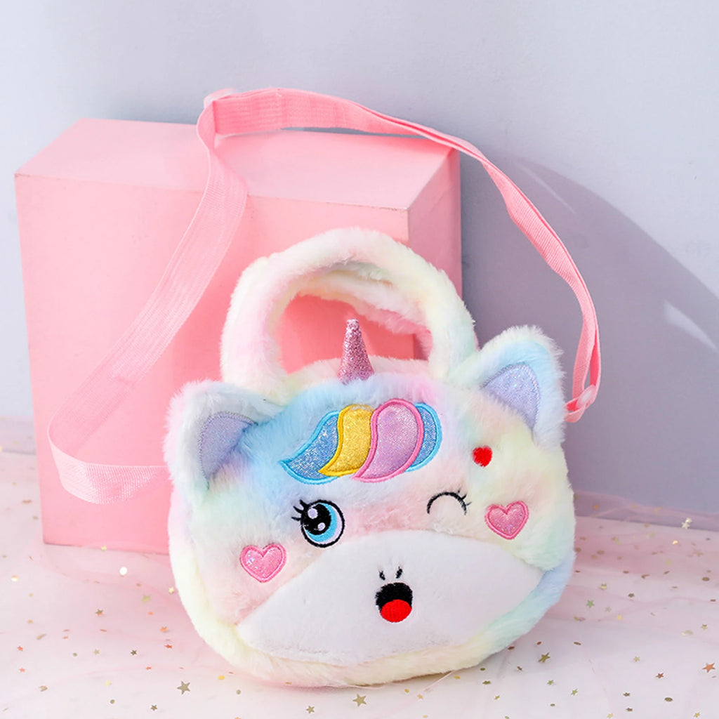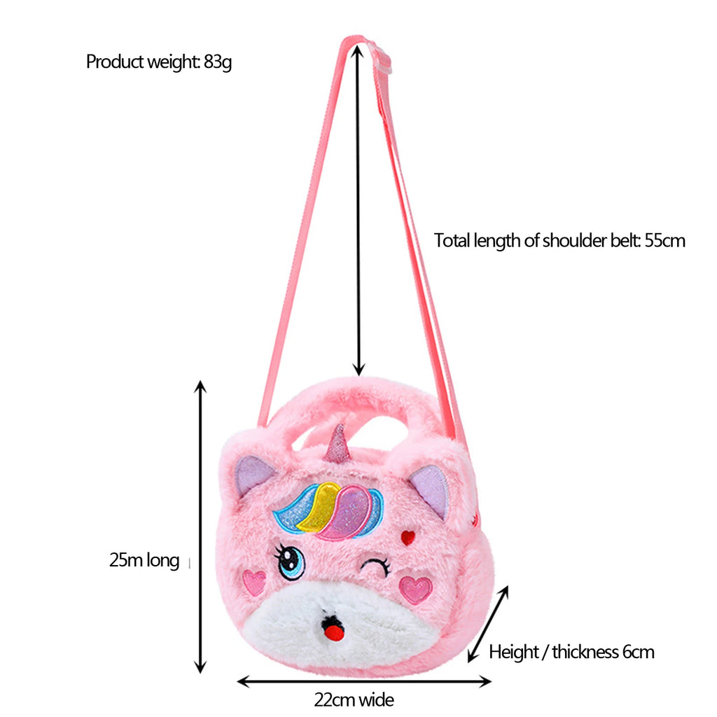 This adorable plush shoulder bag is perfect for girls when traveling or shopping. It features a cute cartoon animal design and includes a coin purse.