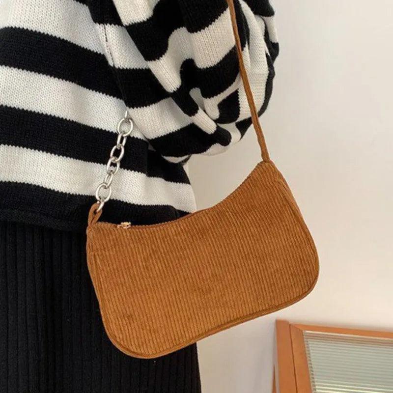 This portable small square bag is perfect for carrying your essentials in style. Made of plush corduroy, it features a one-shoulder design that is both fashionable and functional.
