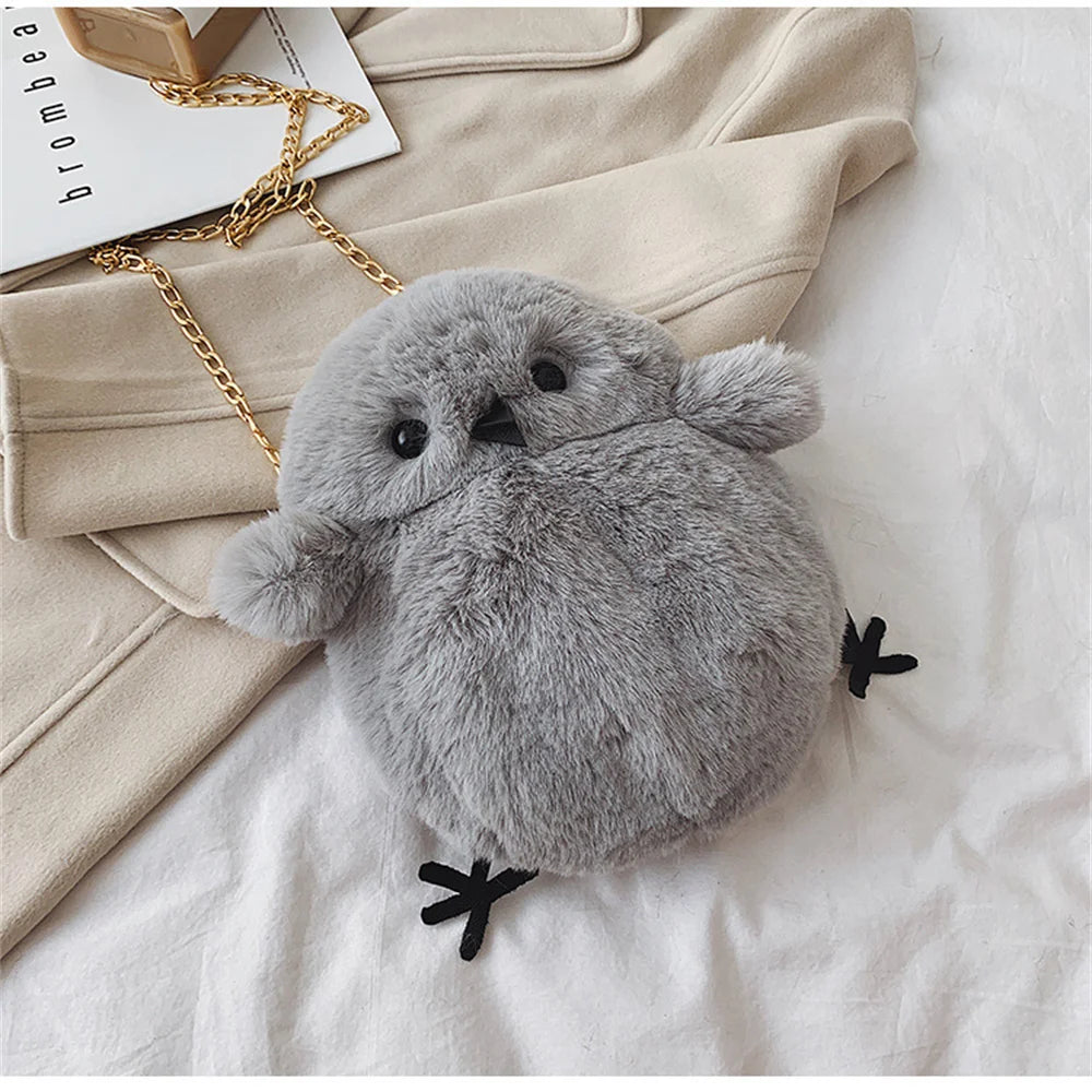 Plush Owl Crossbody Bag with Chain Shoulder Strap
