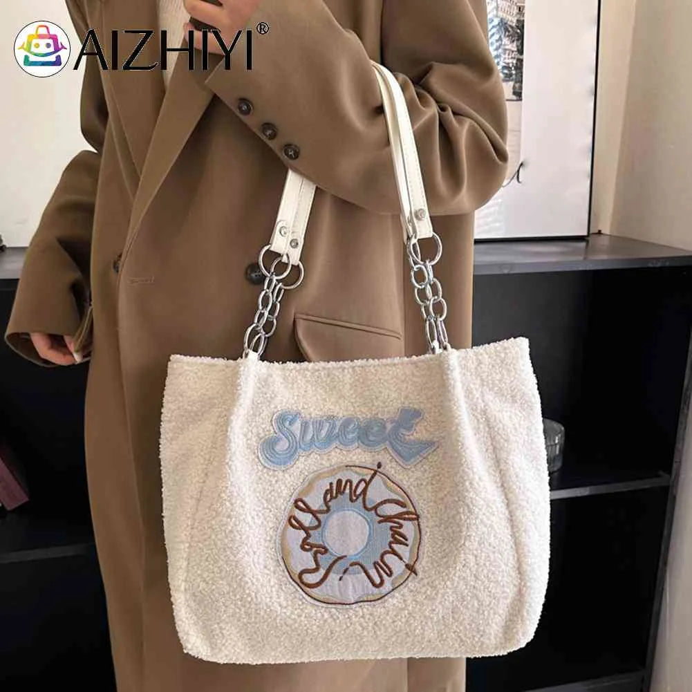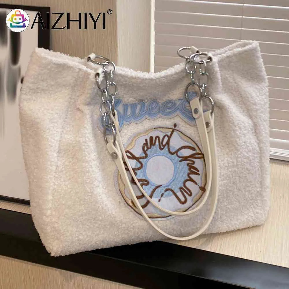 Plush Shoulder Bag Large Capacity Ladies Handbags Casual Chain Portable Zipper
