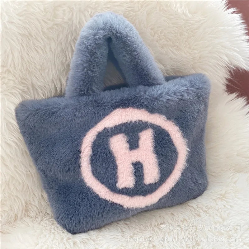 Plush Winter Shoulder Bag Chain Handbag Messenger Soft Warm Bag
