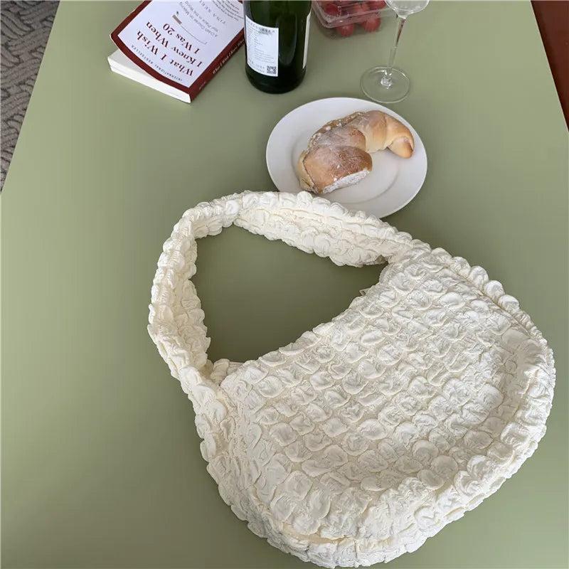 This underarm bag is made of high-quality polyester fiber, perfect for casual use. It features a large capacity, zipper closure, and is ideal for girls.
