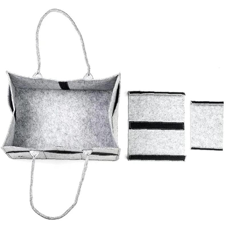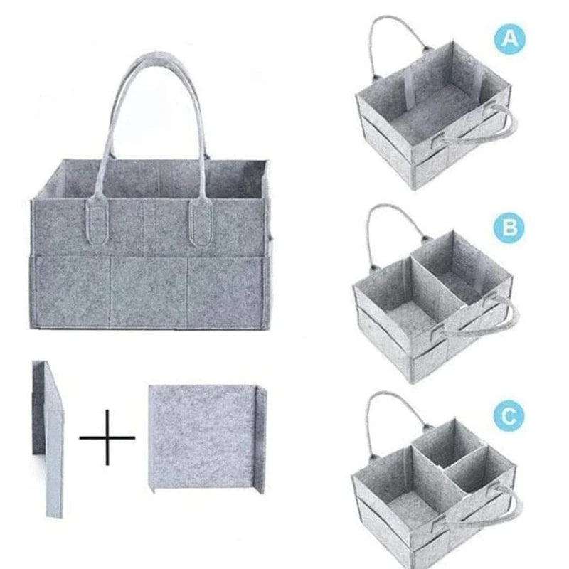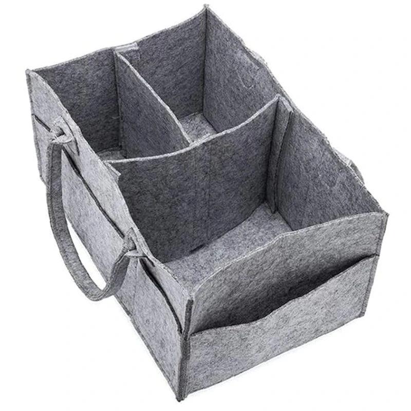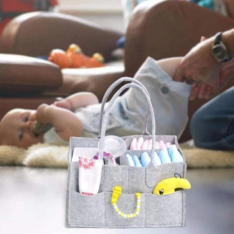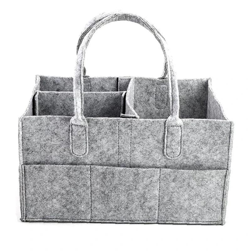 This portable organizer handbag is perfect for storing baby diapers and other nursery essentials. Made of felt material, it's durable and lightweight, making it easy to carry around. Keep your baby's items organized with this convenient storage solution.