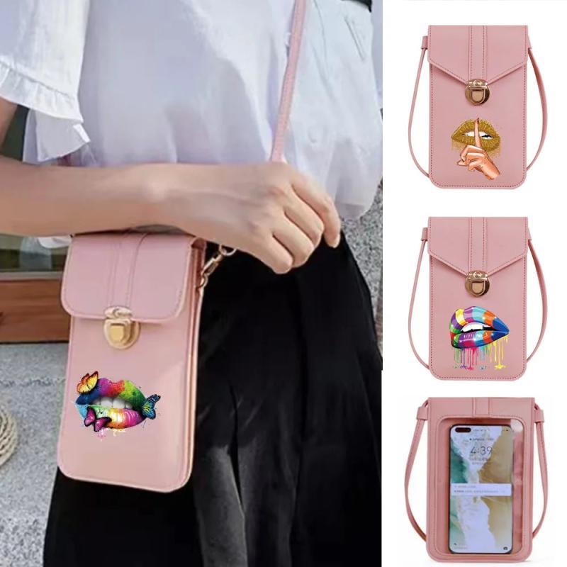 Print Mouth Mobile Phone Bag Wallet Touch Screen Handbag