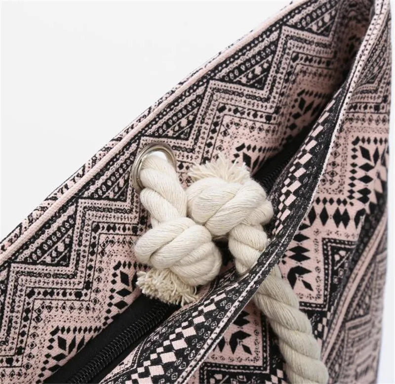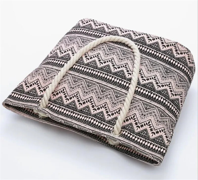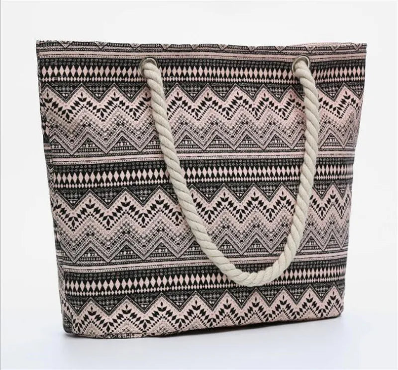 Printed Flowers Canvas Handbags Casual Shoulder Bags Large Size Beach Bags