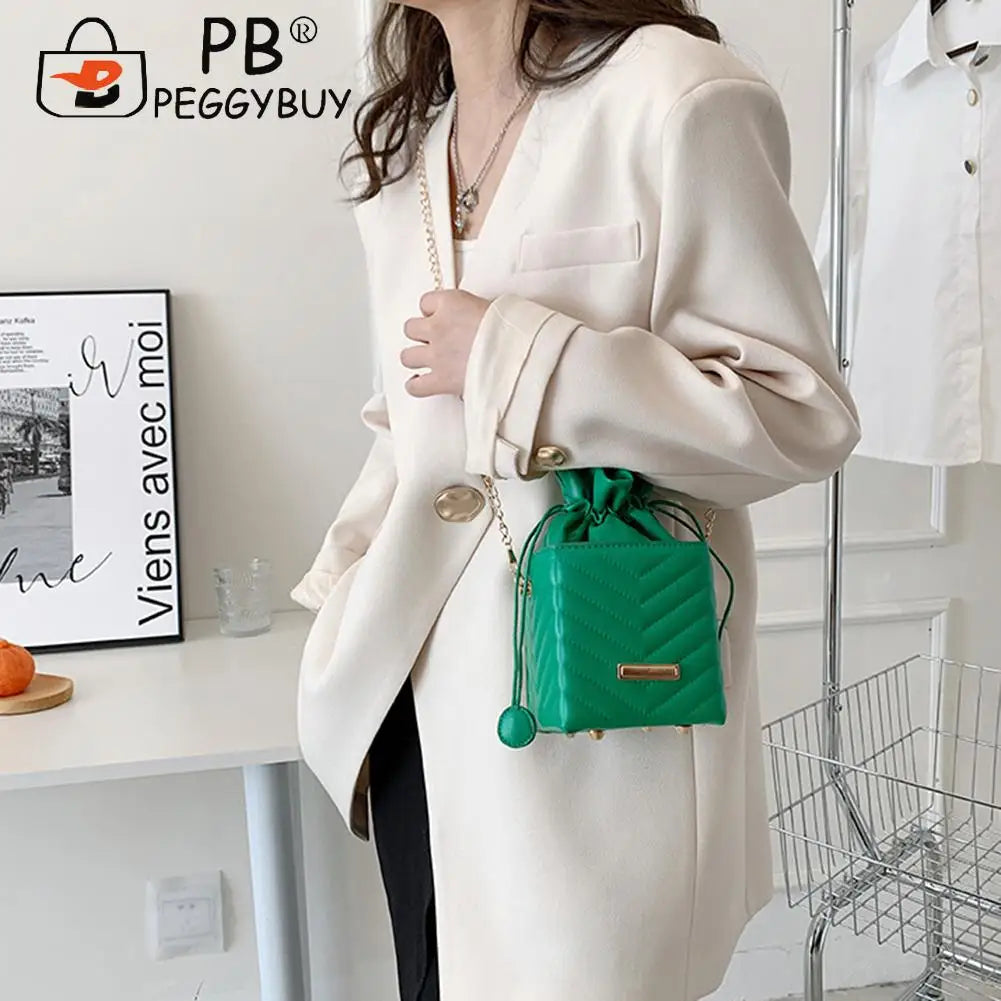 PU Leather Chain Shoulder Crossbody Bucket Bag Handbag