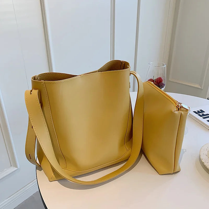 This large bucket bag is perfect for everyday use with its elegant design and spacious compartments. Made with high-quality PU leather, this bag is a versatile addition to any wardrobe.