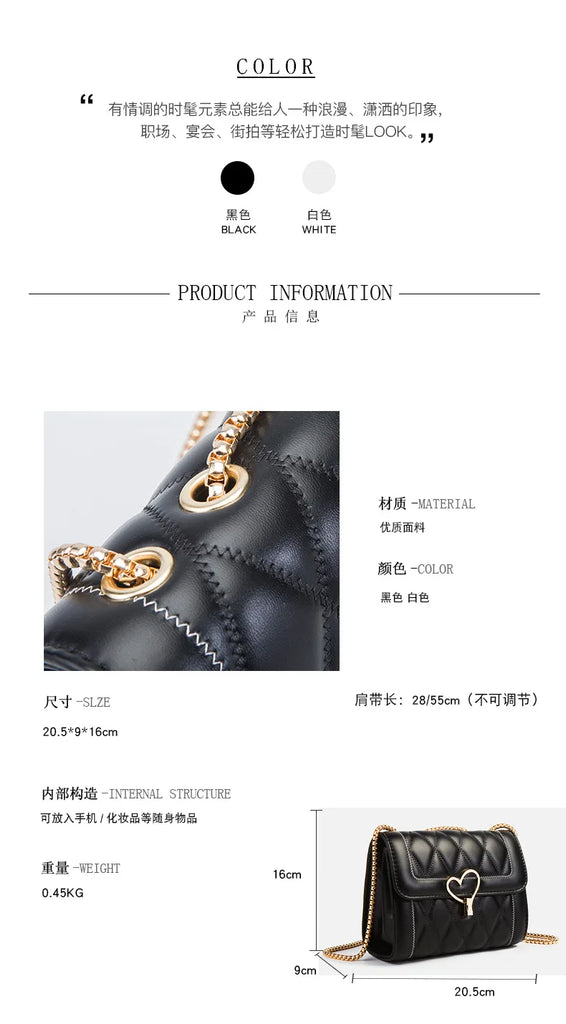 This stylish bag is made of high-quality PU leather with a large capacity. It features a rhombus chain design and is perfect for daily use.
