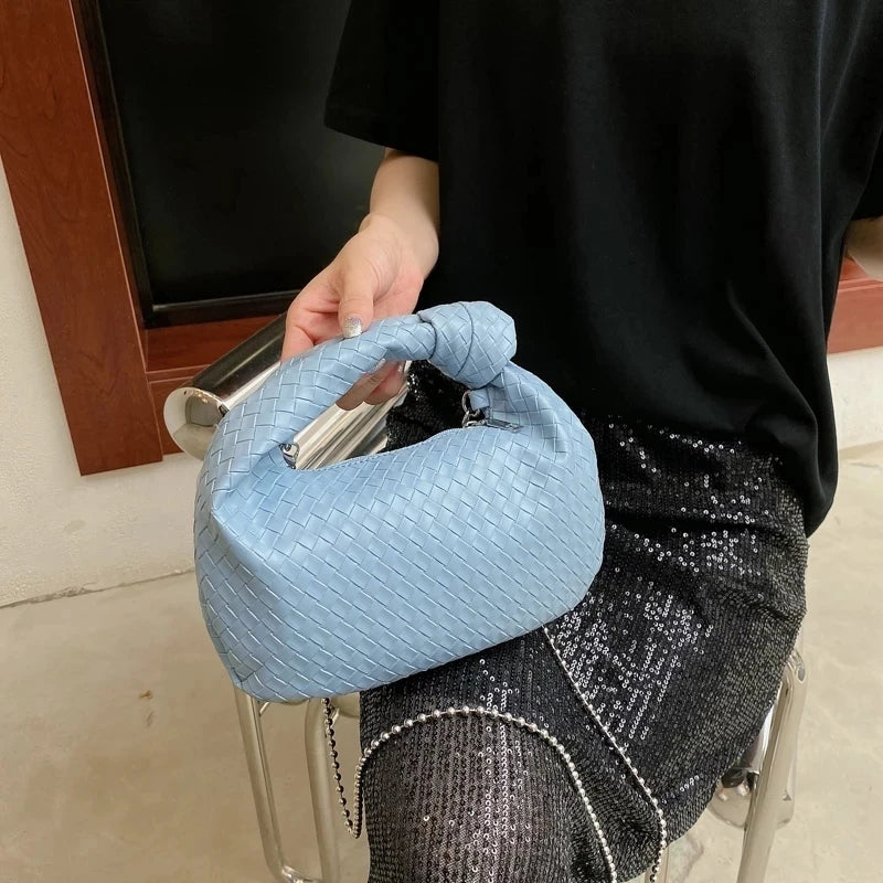 Stay stylish with this small crossbody bag made of weave-patterned PU leather. It's perfect for summer outings, casual occasions, and more.
