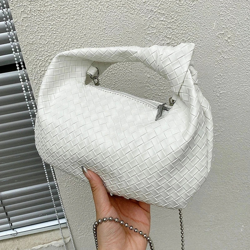 Description:Stay stylish with this small crossbody bag made of weave-patterned PU leather. It's perfect for summer outings, casual occasions, and more.Features: Weave-patterned PU leather material Small and compact design for easy carrying Features a chain shoulder strap for a trendy look Ideal for summer outings and casual occasions Keep your...