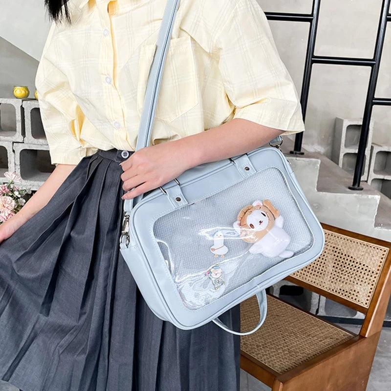 This all-match PU shoulder bag is perfect for school, commute, and daily use. It features an adjustable strap and zipper closure.