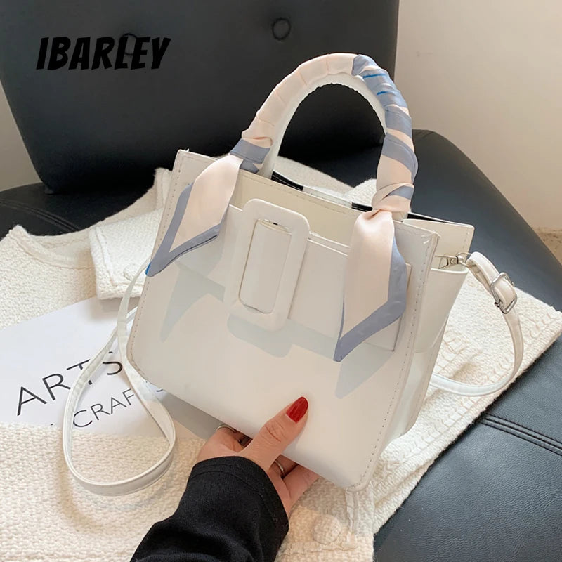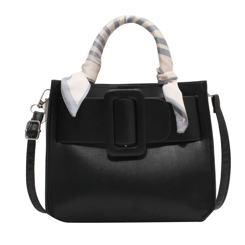 PU Wide Buckle Ladies Shoulder Bag with Silk Scarf