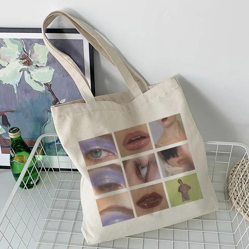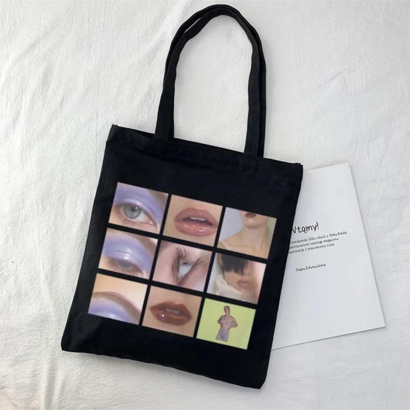 This Harajuku canvas bag is perfect for urban Y2K vintage street style. It has a large capacity for shopping and features a casual shoulder design.