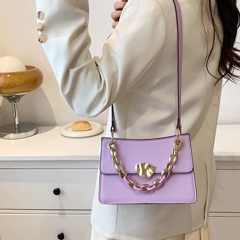 Stay stylish with this purple ladies messenger bag made of PU leather. Its versatile design makes it perfect for carrying your phone and essentials. Can be worn as a shoulder bag or clutch.