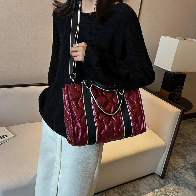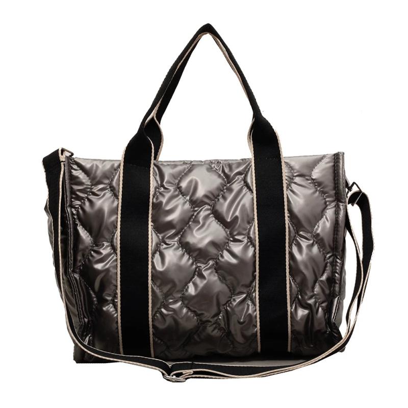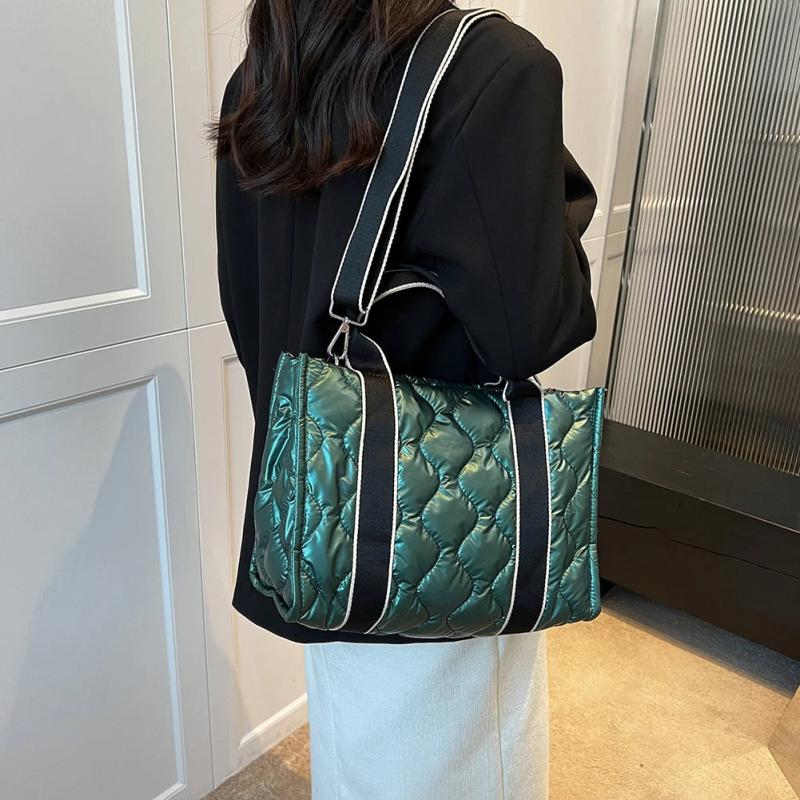 Stay stylish and warm with this autumn winter shoulder handbag made of down quilted cotton. Large capacity and portable, ideal for shopping or traveling.