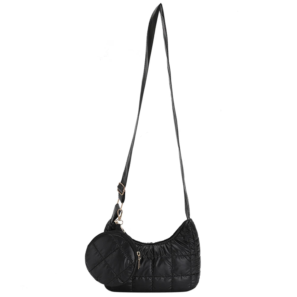 Stay stylish and organized with this quilted crossbody bag featuring adjustable strap and small round purse. Perfect for autumn and winter looks.