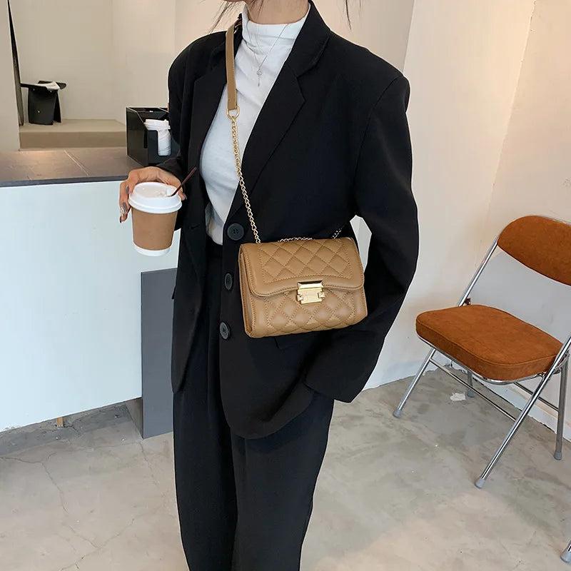 Quilted Pu Leather Mini Flap Crossbody Bag Spring Shoulder Chain Purses