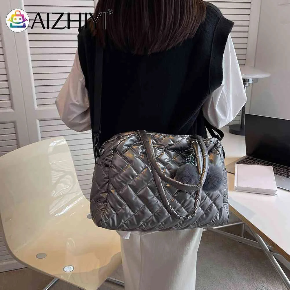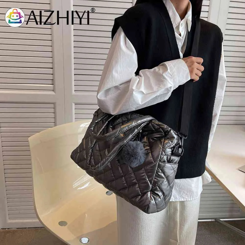 Stay stylish and organized with this large capacity shoulder bag featuring a playful pompom pendant. Perfect for autumn and winter seasons, this quilted bag is great for travel and everyday use.