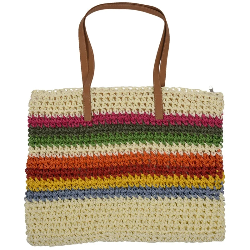 Get a stylish beach accessory with this Rainbow Lady Handbag. It features a shoulder version of the classic beach straw bag.