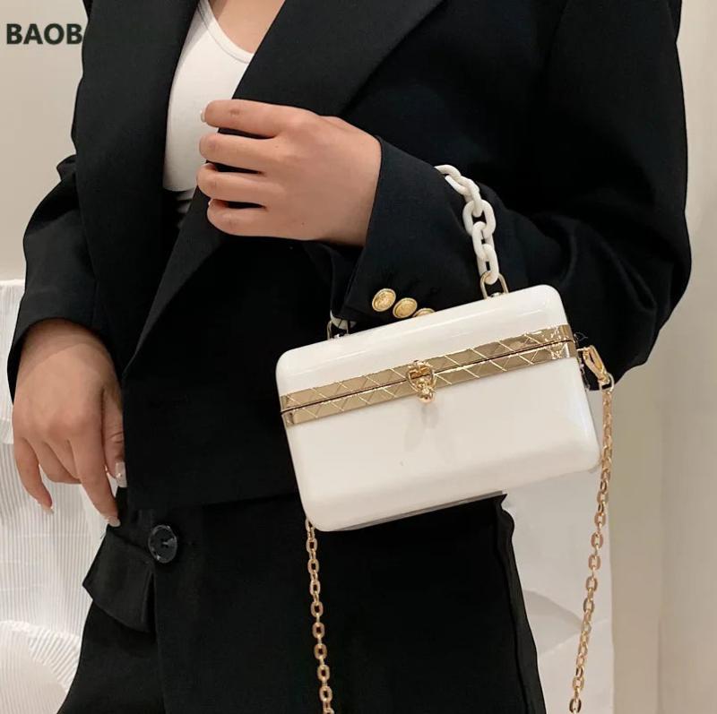 Retro Acrylic Box Bag with Chain One-shoulder Messenger Handbags