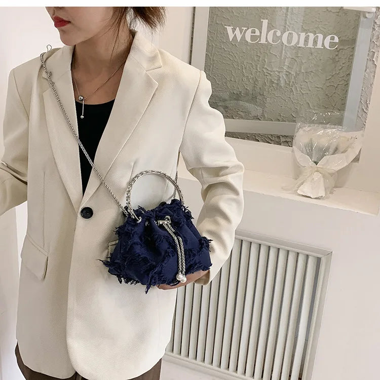 Retro Canvas Tassel Crossbody Bags Personality Ins Ladies Bucket Purses