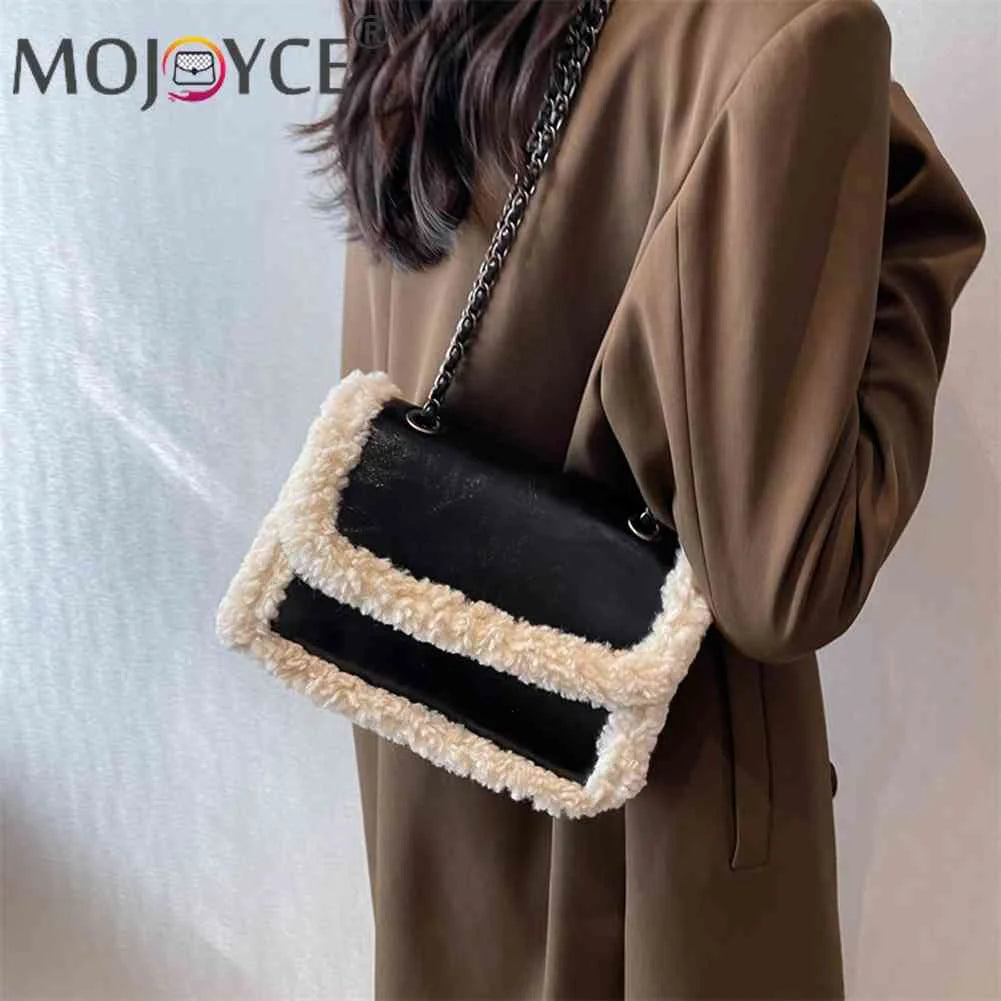 Retro Chain Shoulder Bags Fleece Faux Suede Handbag Street Satchel