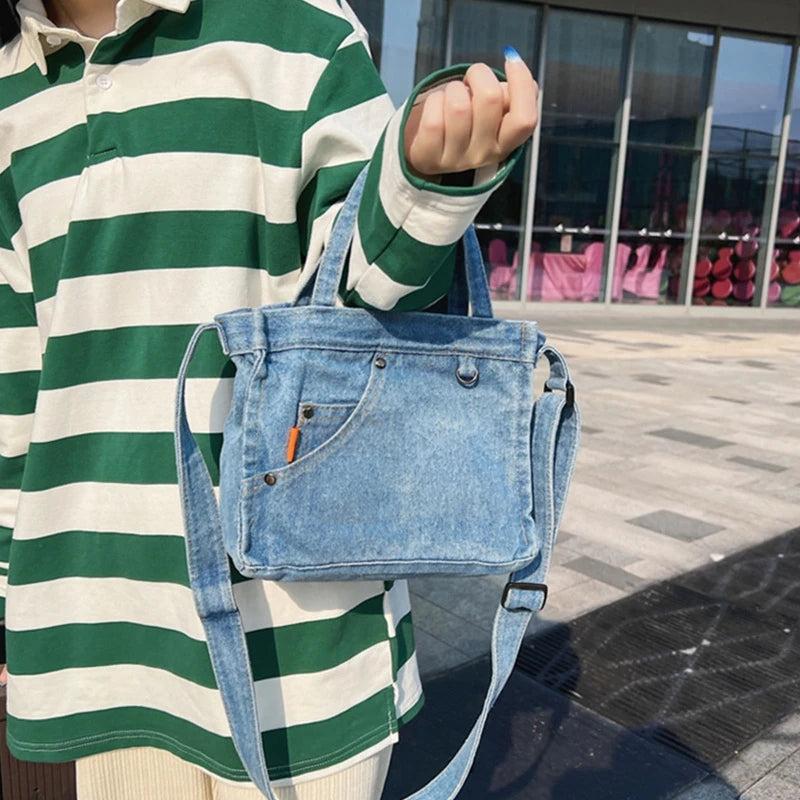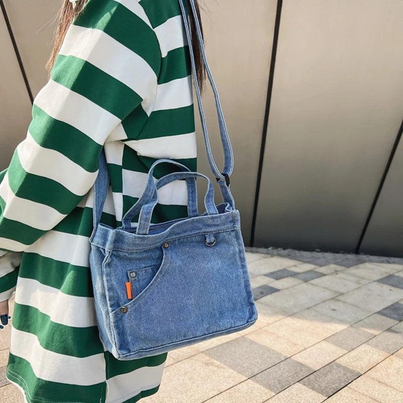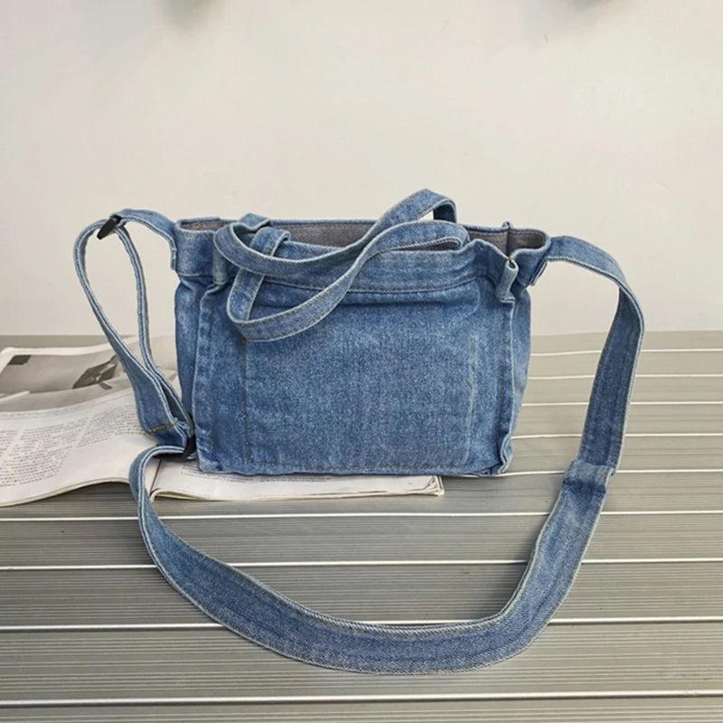 Retro Denim Crossbody Bag with Pockets for Travel and College