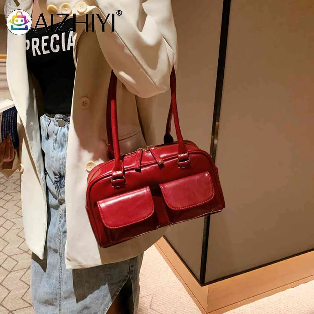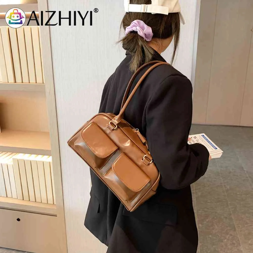 Retro PU Leather Shoulder Handbags Double Pocket Tote Handbags
