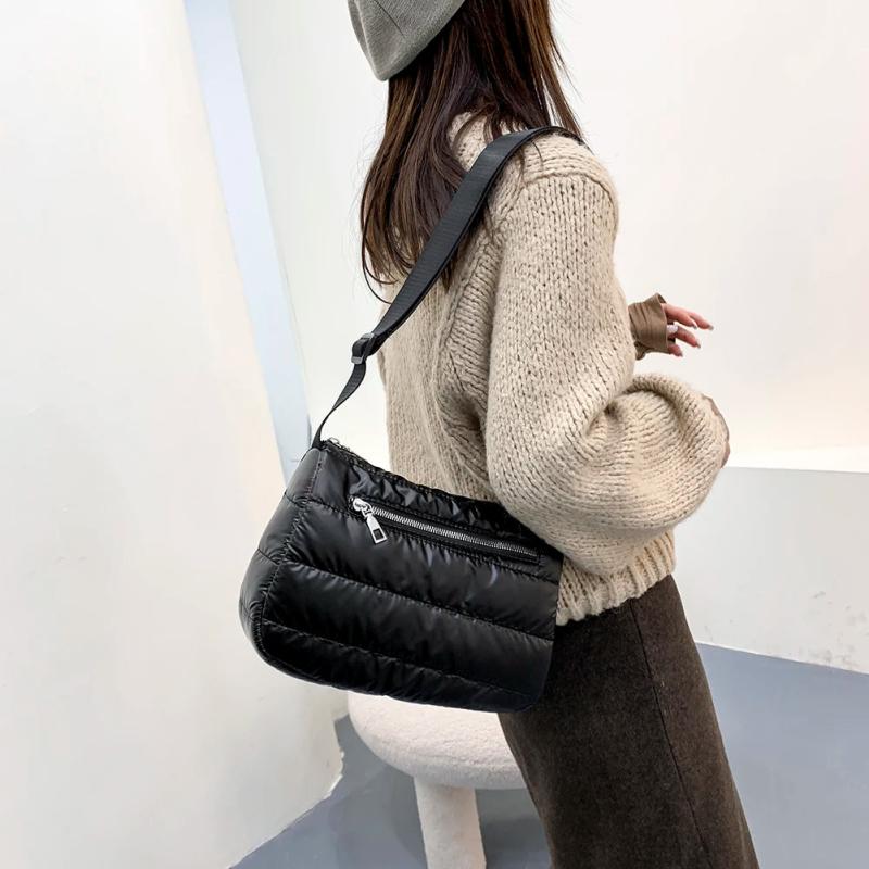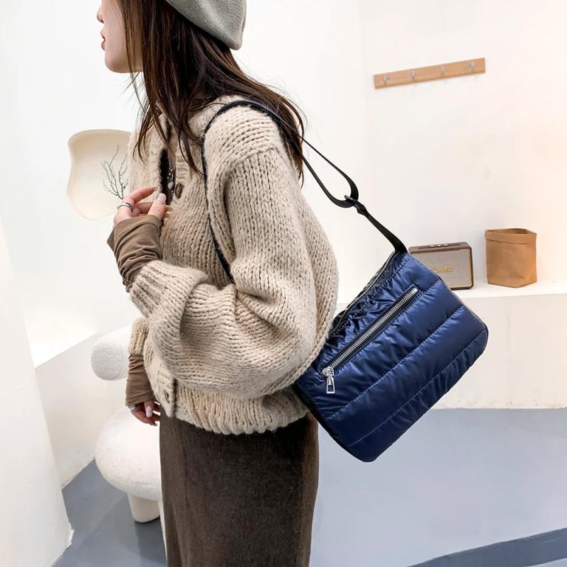 Retro Quilted Stripe Nylon Crossbody Bag Winter Handbag