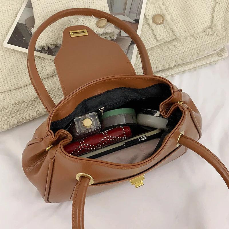 Stay stylish with this pure female handbag made of PU leather. It's perfect for everyday use and adds a touch of retro charm to your outfit.