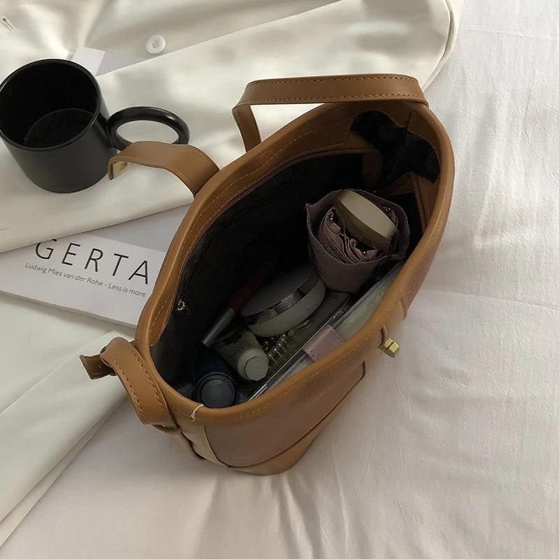 This soft leather handbag is a versatile accessory for daily use. It features a retro design with a casual bucket shape, perfect for carrying your essentials. The solid color adds a touch of elegance to your outfit.