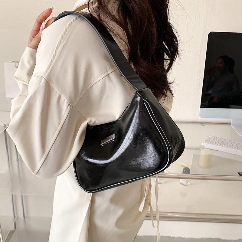 This woman bag is a stylish and practical accessory for everyday use. Made of soft leather, it features a retro design with a French twist. This armpit bag can be used as a clutch purse or a shoulder bag, making it versatile and convenient.